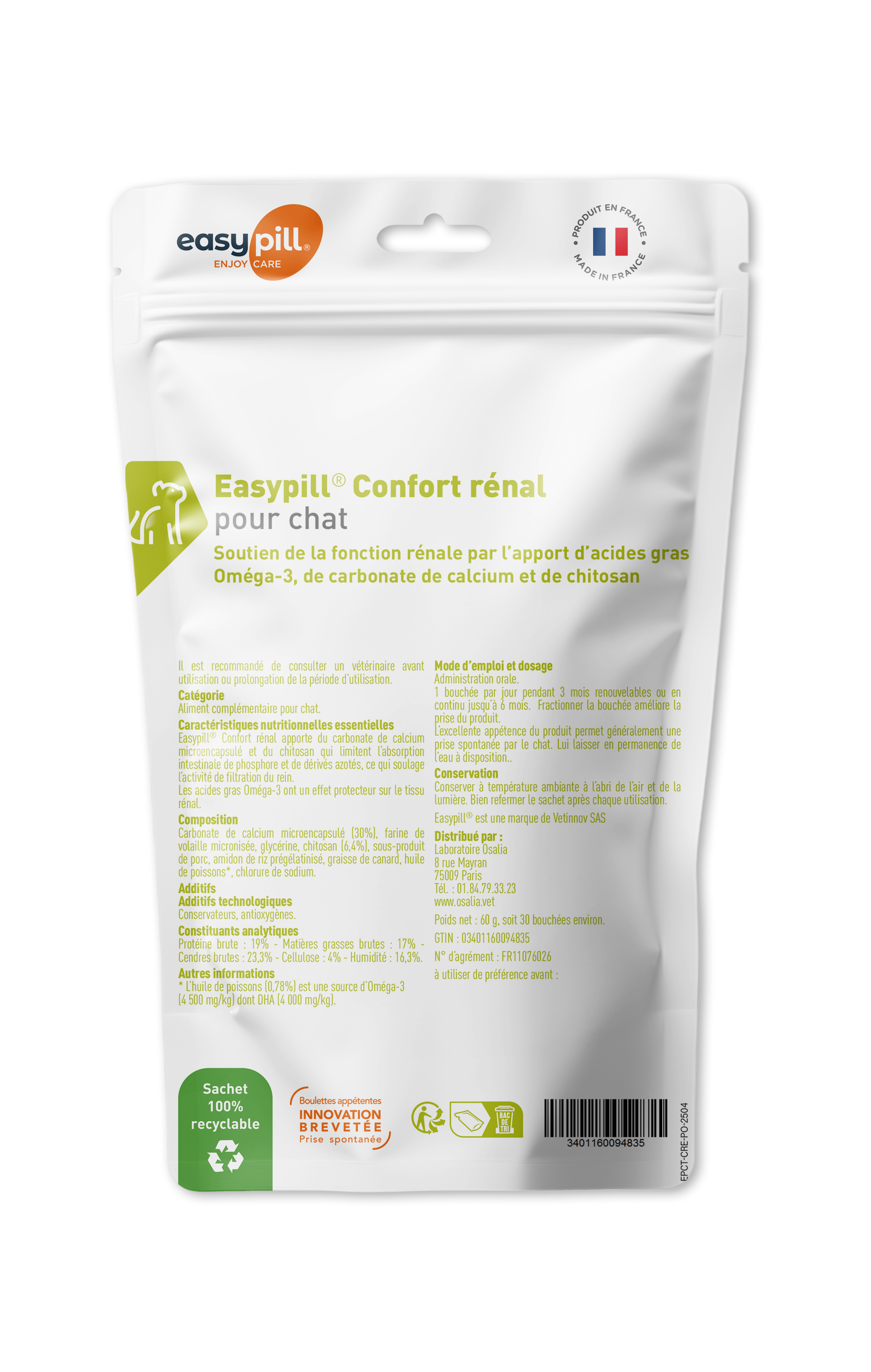 Chat | Soutien de la fonction rénale par l’apport d’Oméga 3, de carbonate de calcium et de chitosan |