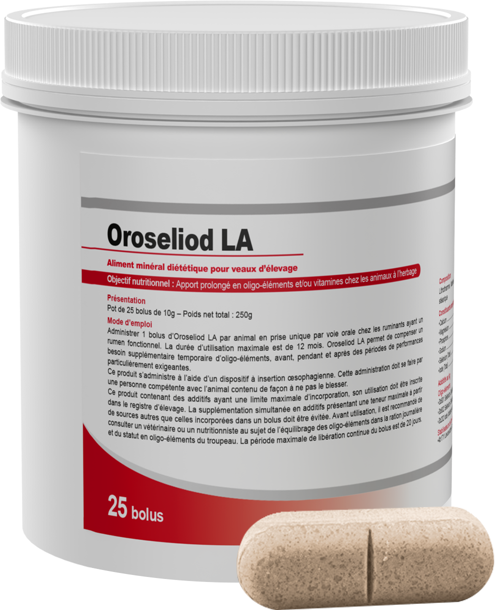 Veau | Oroseliod LA s’utilise chez les veaux d’élevage pour un apport prolongé en iode et sélénium, utiles aux moments-clés pour leurs performances : |