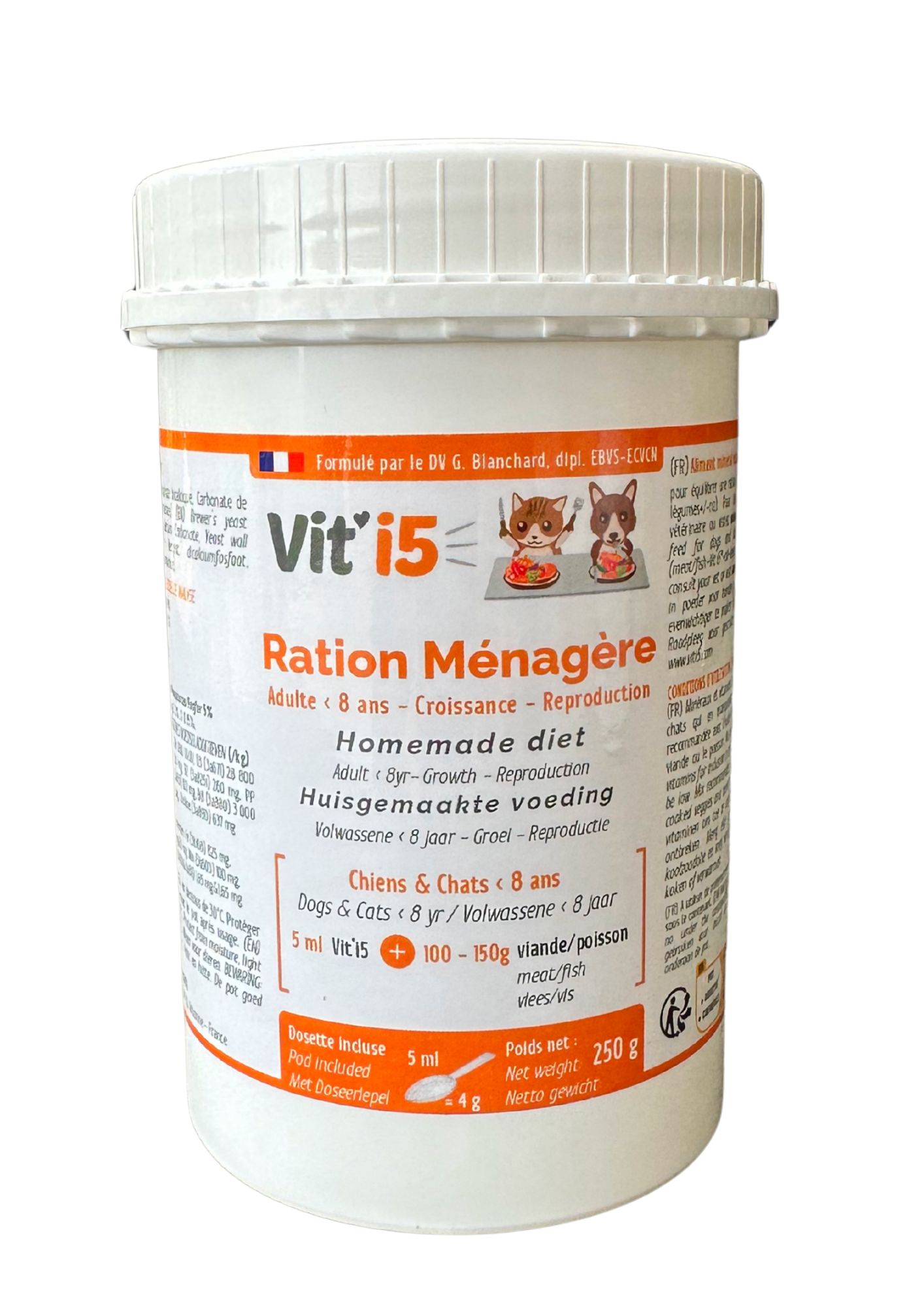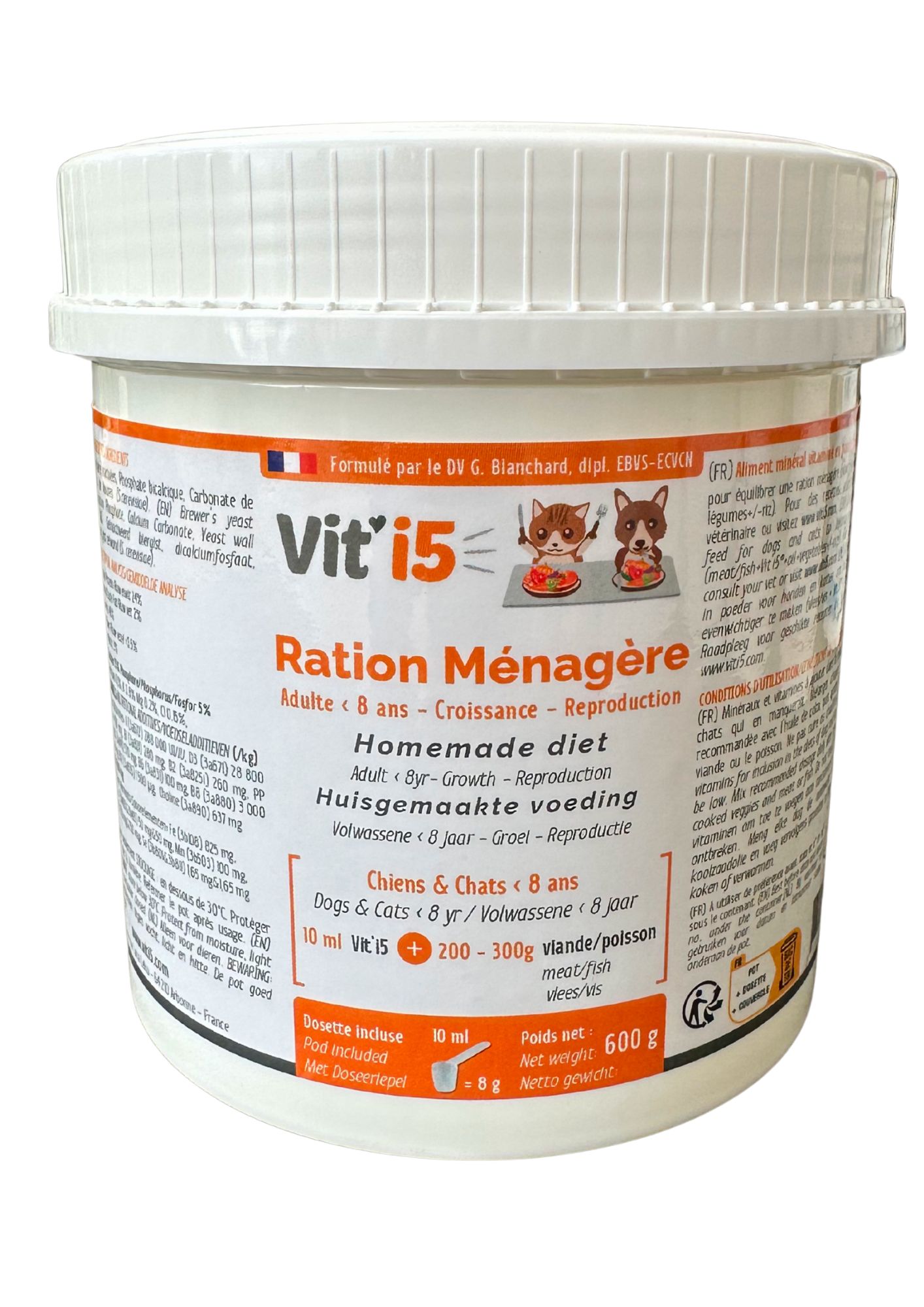 ChienChienneChatChatte | Aliment minéral et vitaminé en poudre pour chiens et chats pour équilibrer la ration ménagère (viande/poisson+Vit’i5®+huile+légumes+/-riz) :