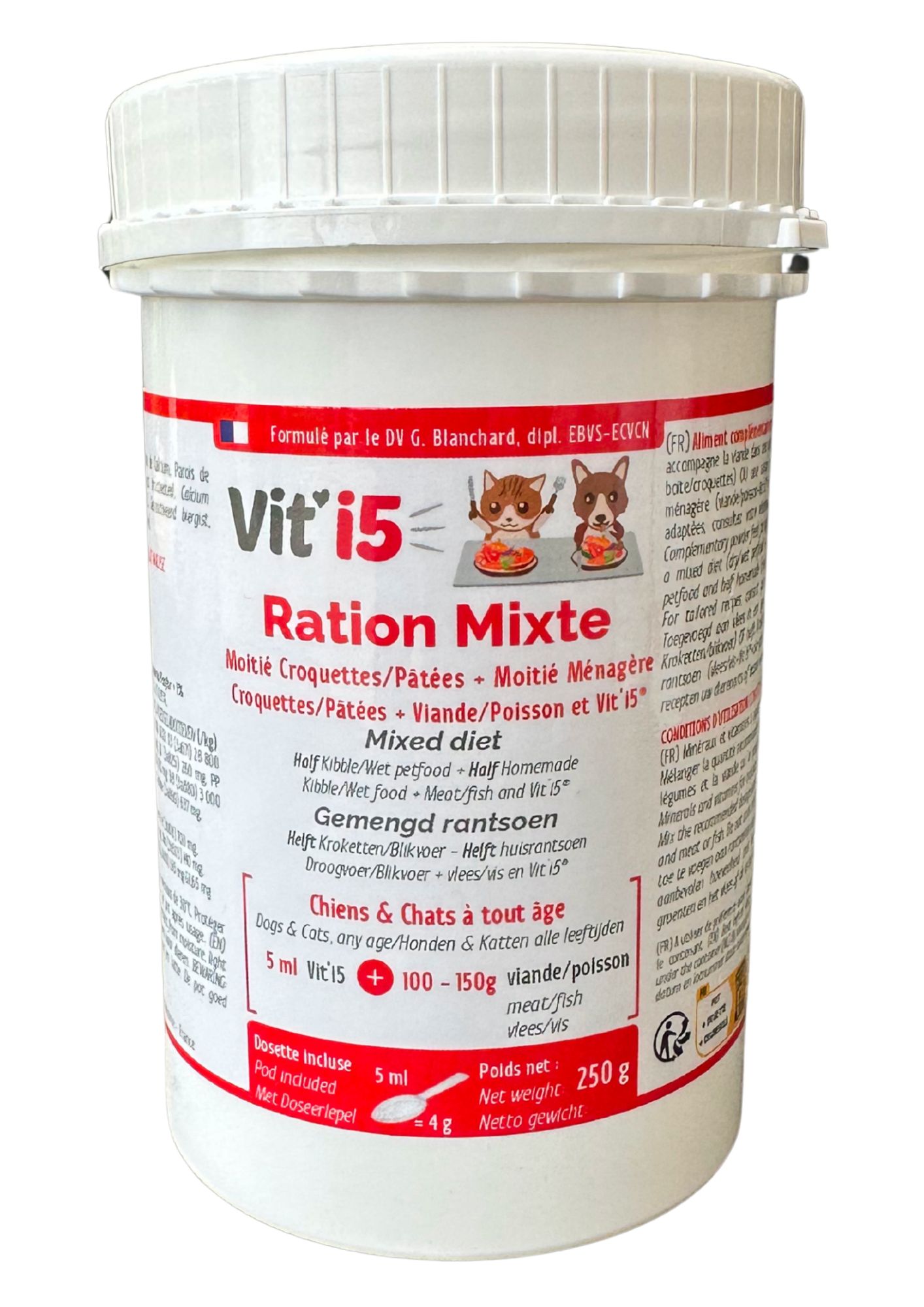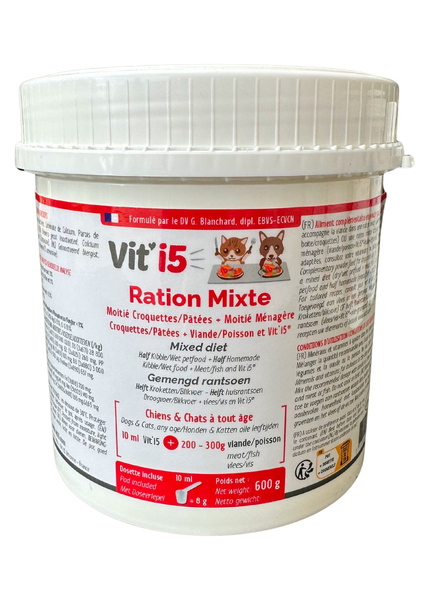 Formulé par le Dr Vét. Géraldine Blanchard, spécialiste en nutrition clinique vétérinaire.