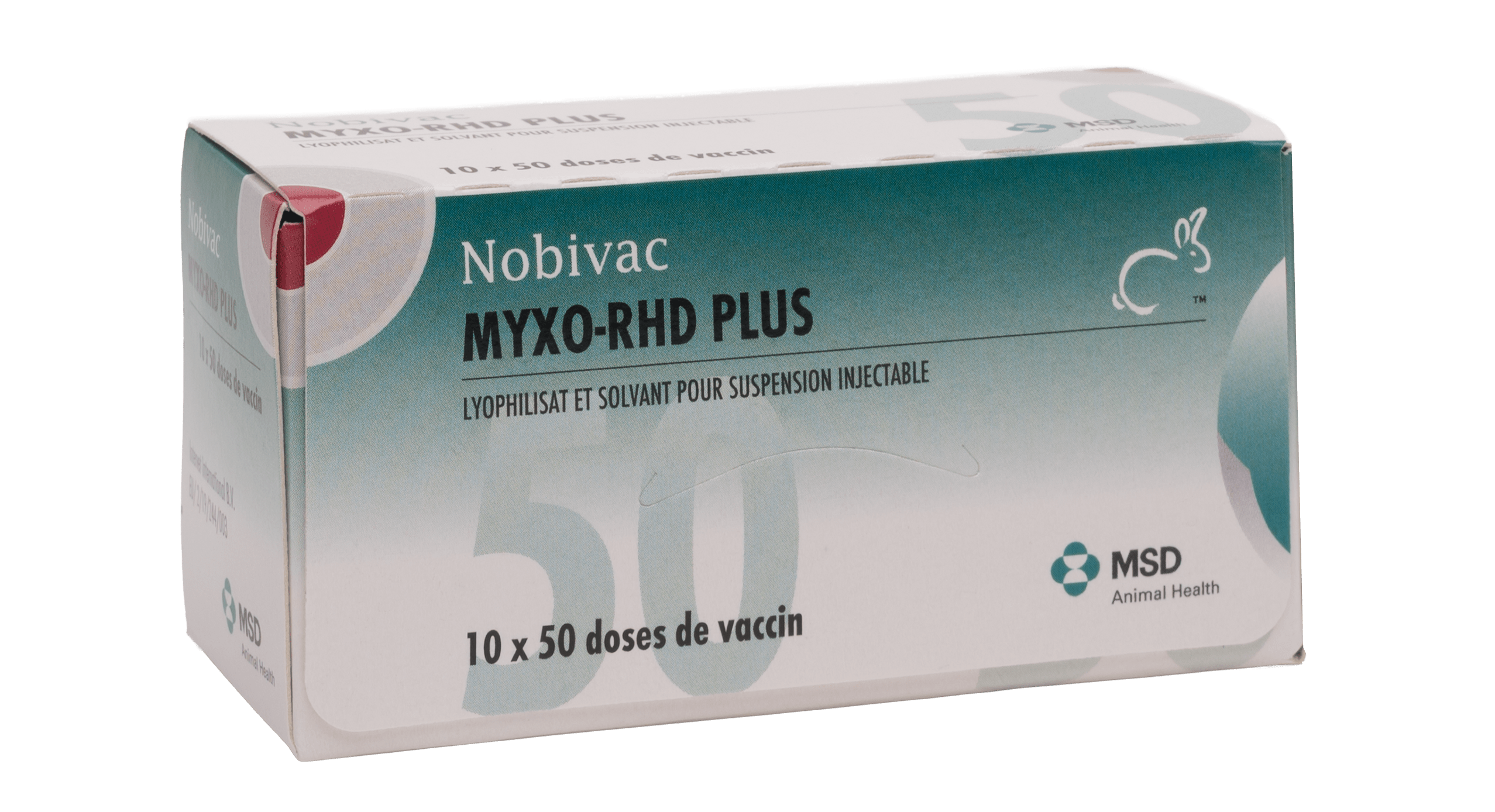 | NOBIVAC® Myxo-RHD PLUS Boîte plastique de 5 flacons de 1 dose de vaccin et de 5 flacons de 0,5 mL de solvant | 08713184199409 | EU/2/19/244/001-003 | 11/19/2019 | Soumis à prescription | Oui |