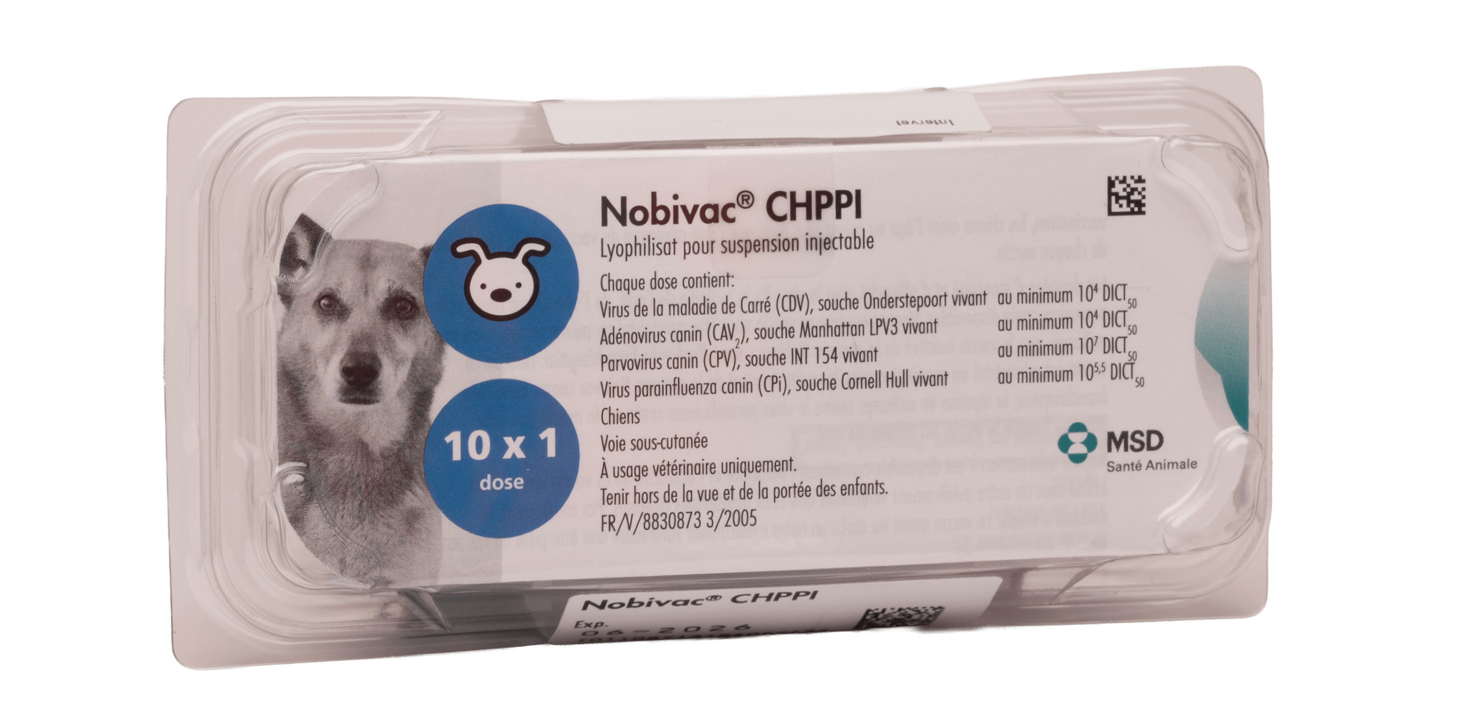 NOBIVAC® CHPPi Boîte carton de 10 flacons de 1 dose de 1 mL | 08713184057426 | FR/V/8830873 3/2005 | 2/11/2005 | Soumis à prescription | Non |