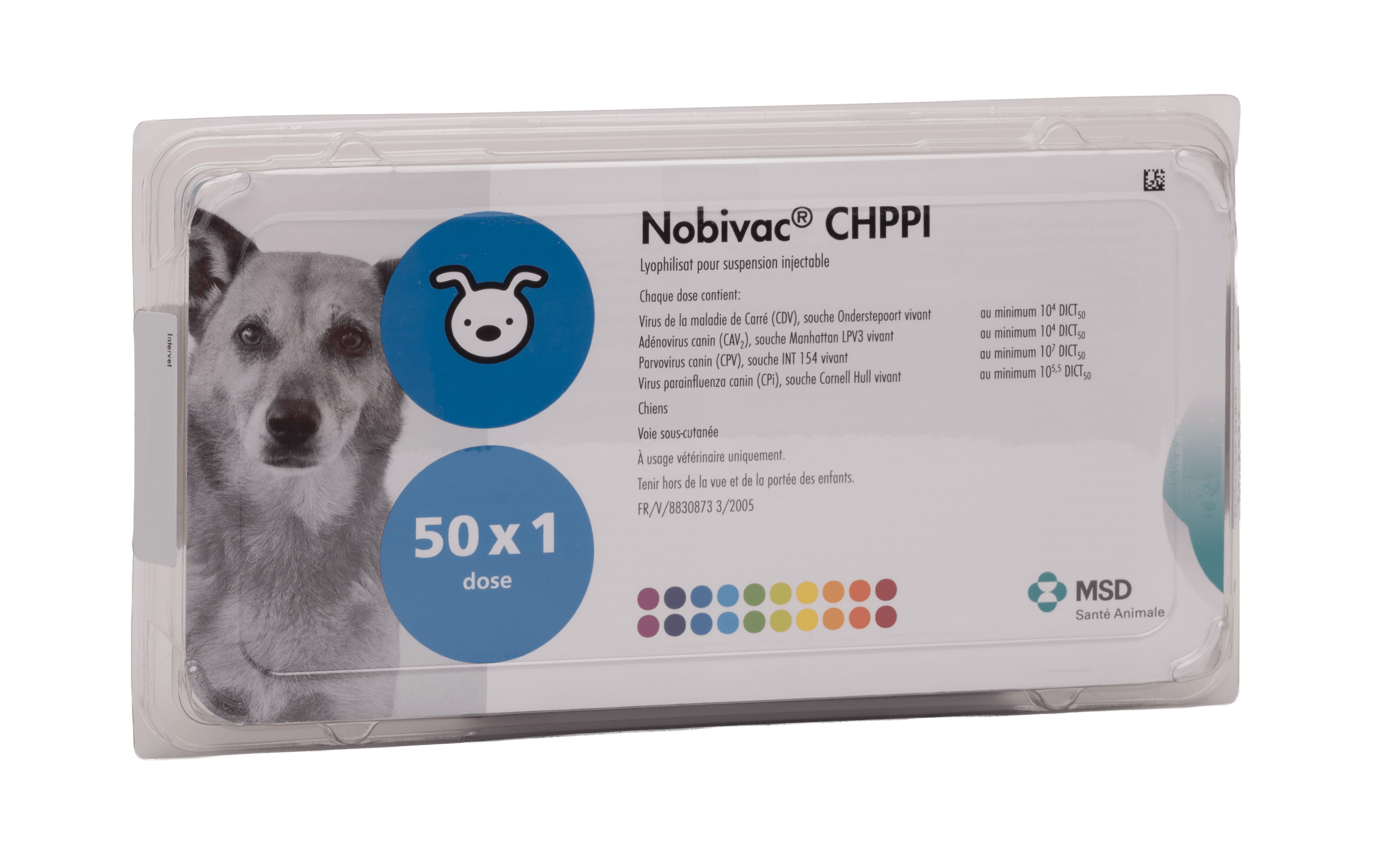NOBIVAC® CHPPi Boîte carton de 50 flacons de 1 dose de 1 mL | 08713184057433 | FR/V/8830873 3/2005 | 2/11/2005 | Soumis à prescription | Non |
