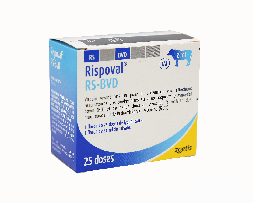 | RISPOVAL® RS-BVD Boîte de 1 flacon de 25 doses de lyophilisat et de 1 flacon de 50 mL de solvant | 05414736009230 | FR/V/2675522 5/1988 | 5/6/1988 | Soumis à prescription | Oui |