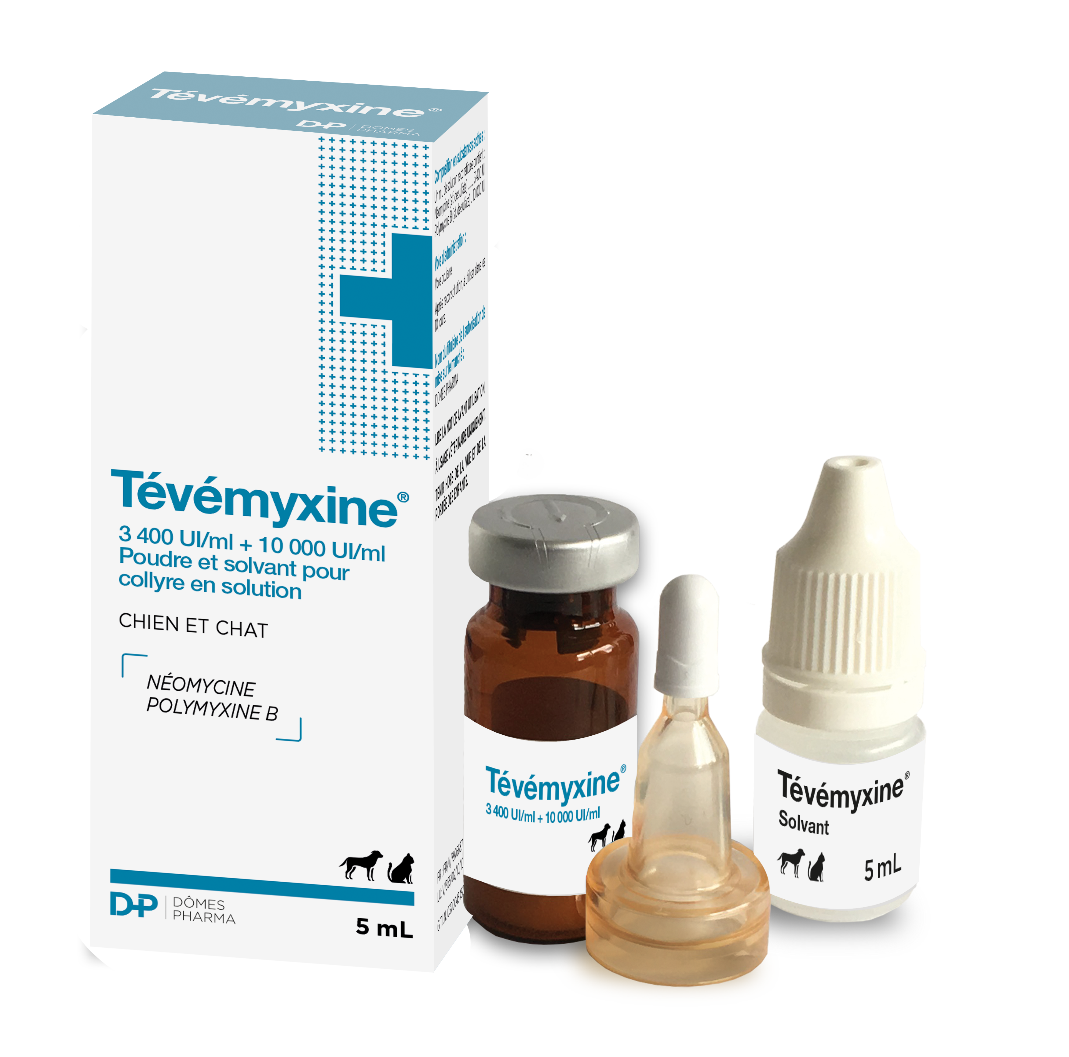 TEVEMYXINE 3 400 UI/ML + 10 000 UI/ML POUDRE ET SOLVANT POUR COLLYRE EN SOLUTION POUR CHIENS ET CHATS