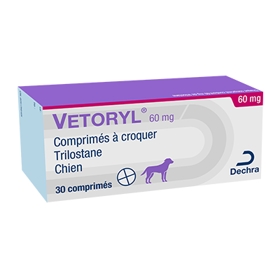 Des prélèvements sanguins pour analyses biochimiques (y compris le dosage des électrolytes) et un test de stimulation à l’hormone adrénocorticotrope (ACTH) doivent être effectués avant le traitement après le diagnostic initial, puis à 10 jours, 4 semaines, 12 semaines, puis tous les 3 mois, pour une surveillance à intervalles réguliers, ainsi que lors de chaque ajustement de la posologie, ou encore si l’on passe de Vetoryl, gélules à Vetoryl, comprimés à croquer, ou vice versa. Les tests de stimulation à l’ACTH doivent impérativement être effectués 4 à 6 heures après l’administration, afin de garantir l’interprétation correcte des résultats. Il est préférable d’administrer le médicament le matin pour permettre à votre vétérinaire d’effectuer les tests de suivi 4 à 6 heures après l’administration de la dose. L’évolution clinique de la maladie doit également être évaluée régulièrement, à savoir lors de chacune des échéances susmentionnées pour les prélèvements sanguins.